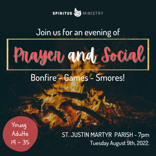A Spiritus Ministry has launched in the York Region. All young adults (19-35) in the area are invited to join us. Thank you to everyone that showed up at our last event. With all the excitement with the new ministry, we wanted to see you all sooner rather than later. The night will consist of praise and worship and a bonfire social with games, sports and smores. Come hang out with others in the community. Bring your friends. We are new on social media. Come follow us on Instagram to be in the loop for all our future events and hangouts.