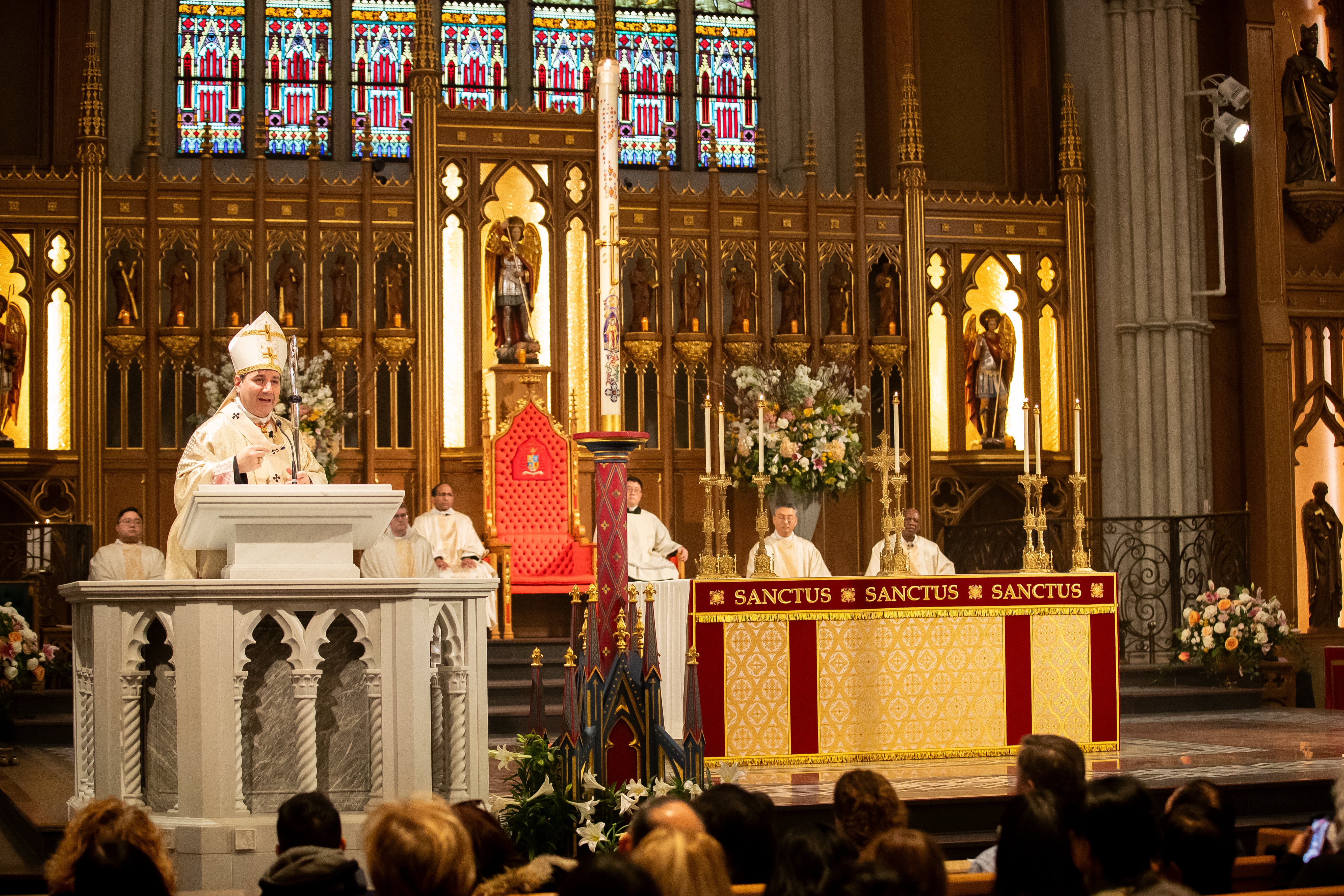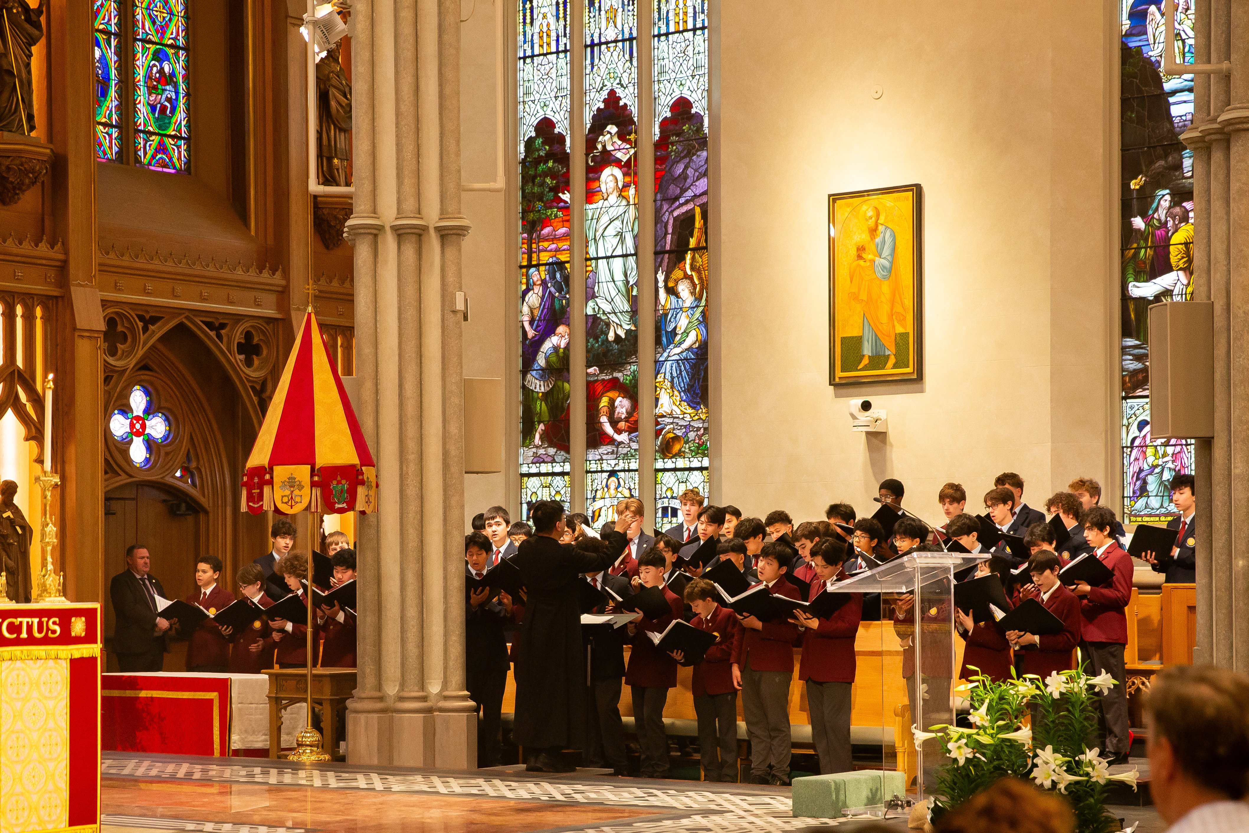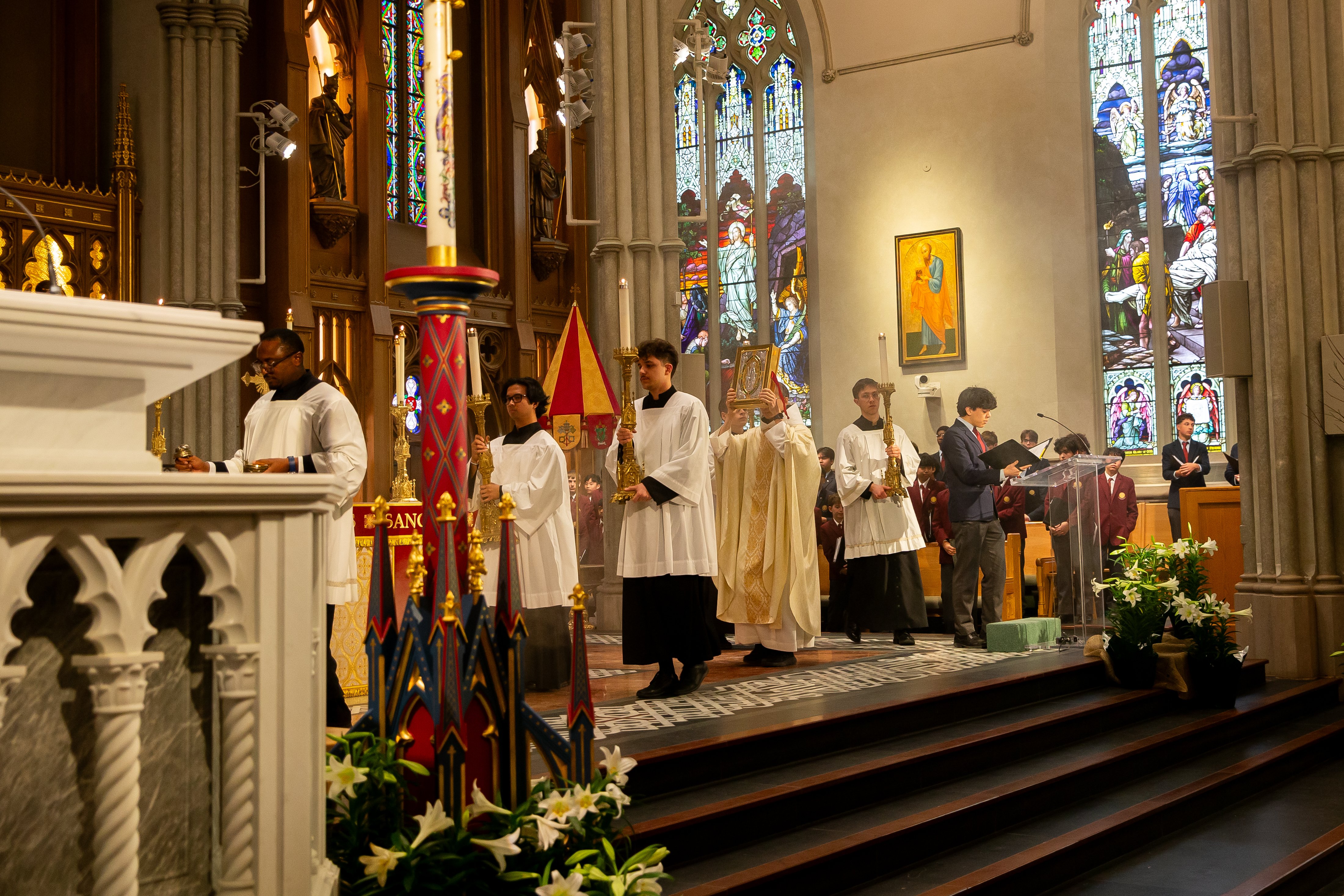At St. Michael’s Cathedral Basilica, His Eminence Frank Cardinal Leo presided at the Easter Sunday Mass at noon, with the sacred music of St. Michael’s Choir School punctuating the triumphant atmosphere.