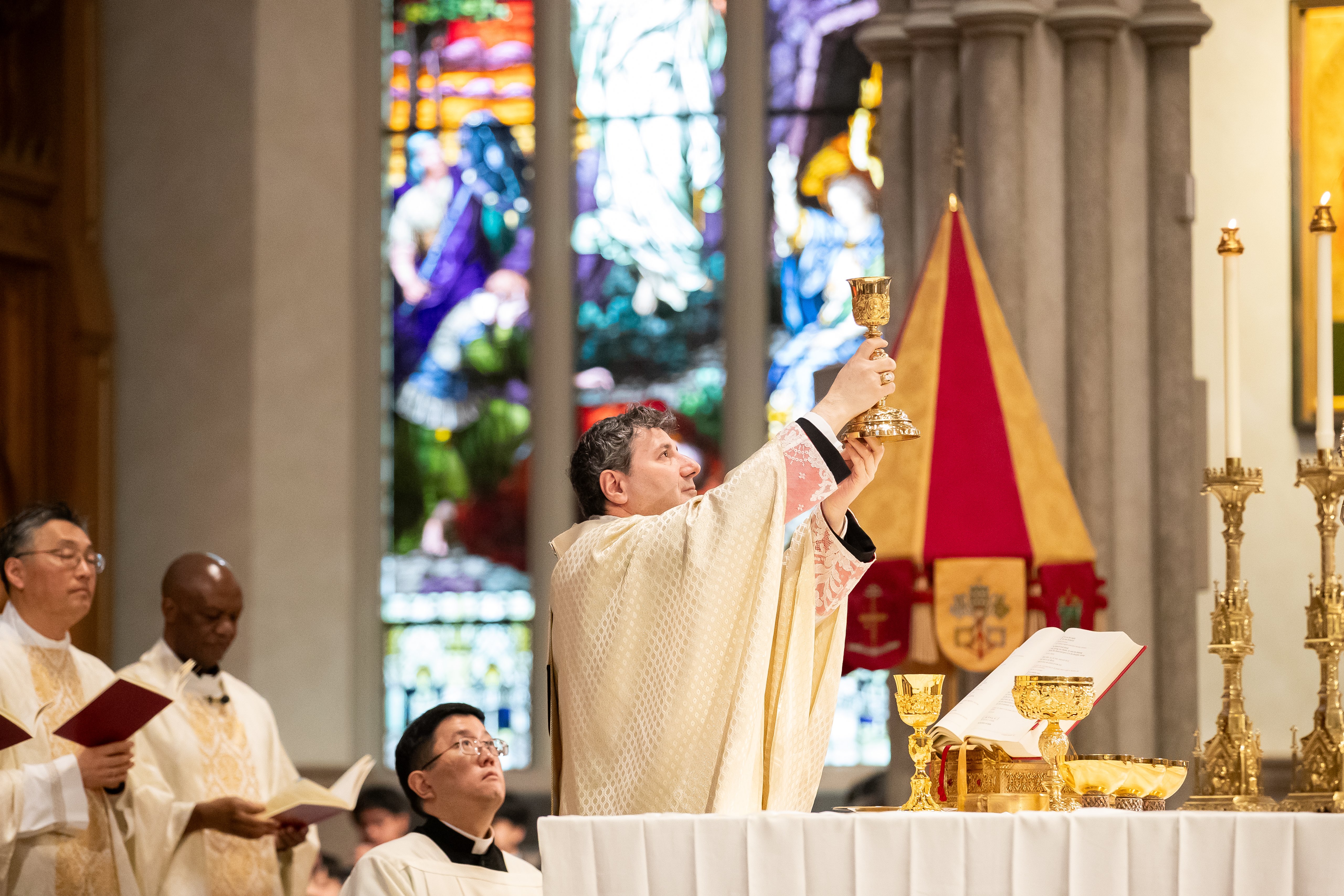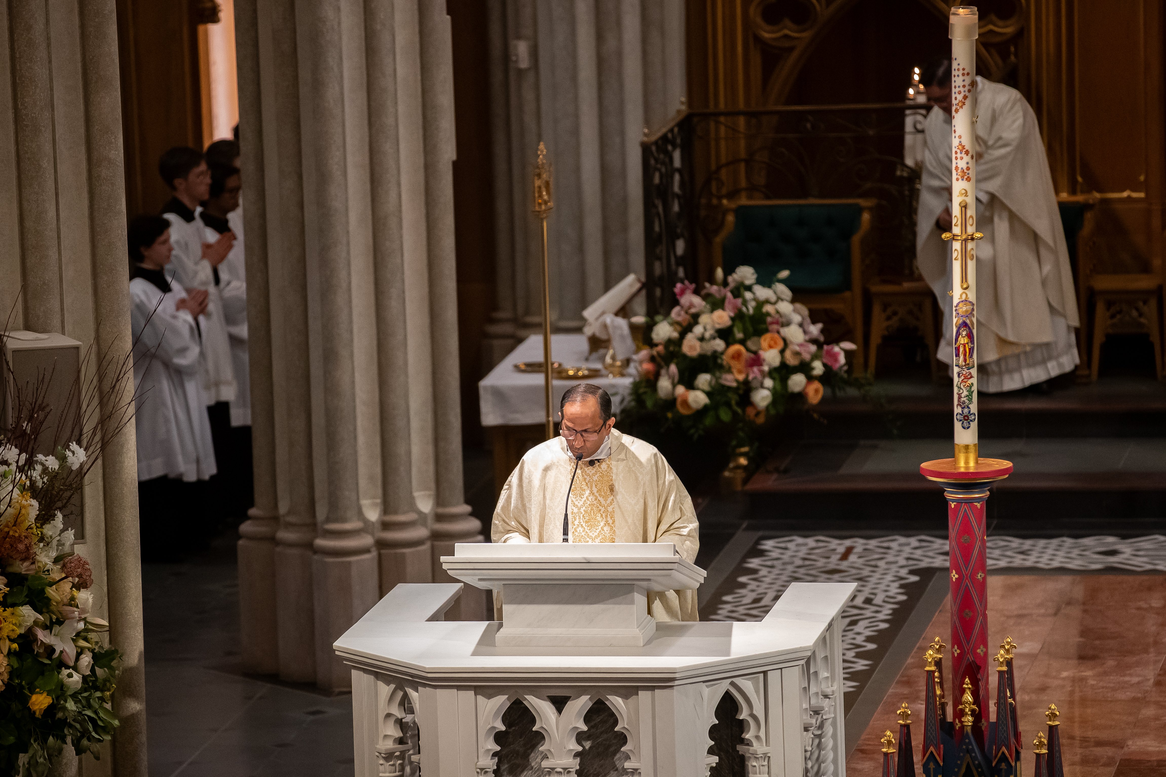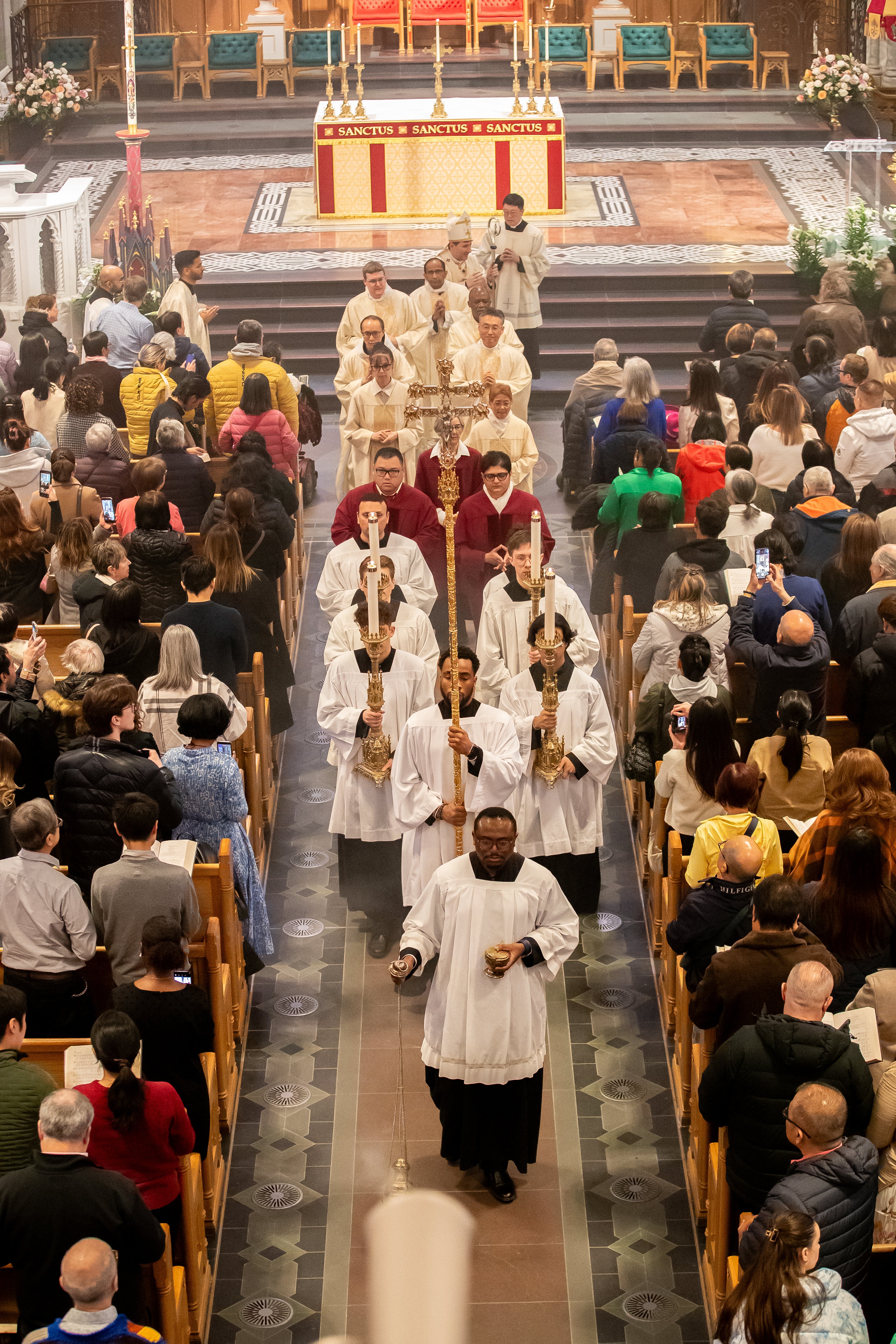 At St. Michael’s Cathedral Basilica, His Eminence Frank Cardinal Leo presided at the Easter Sunday Mass at noon, with the sacred music of St. Michael’s Choir School punctuating the triumphant atmosphere.