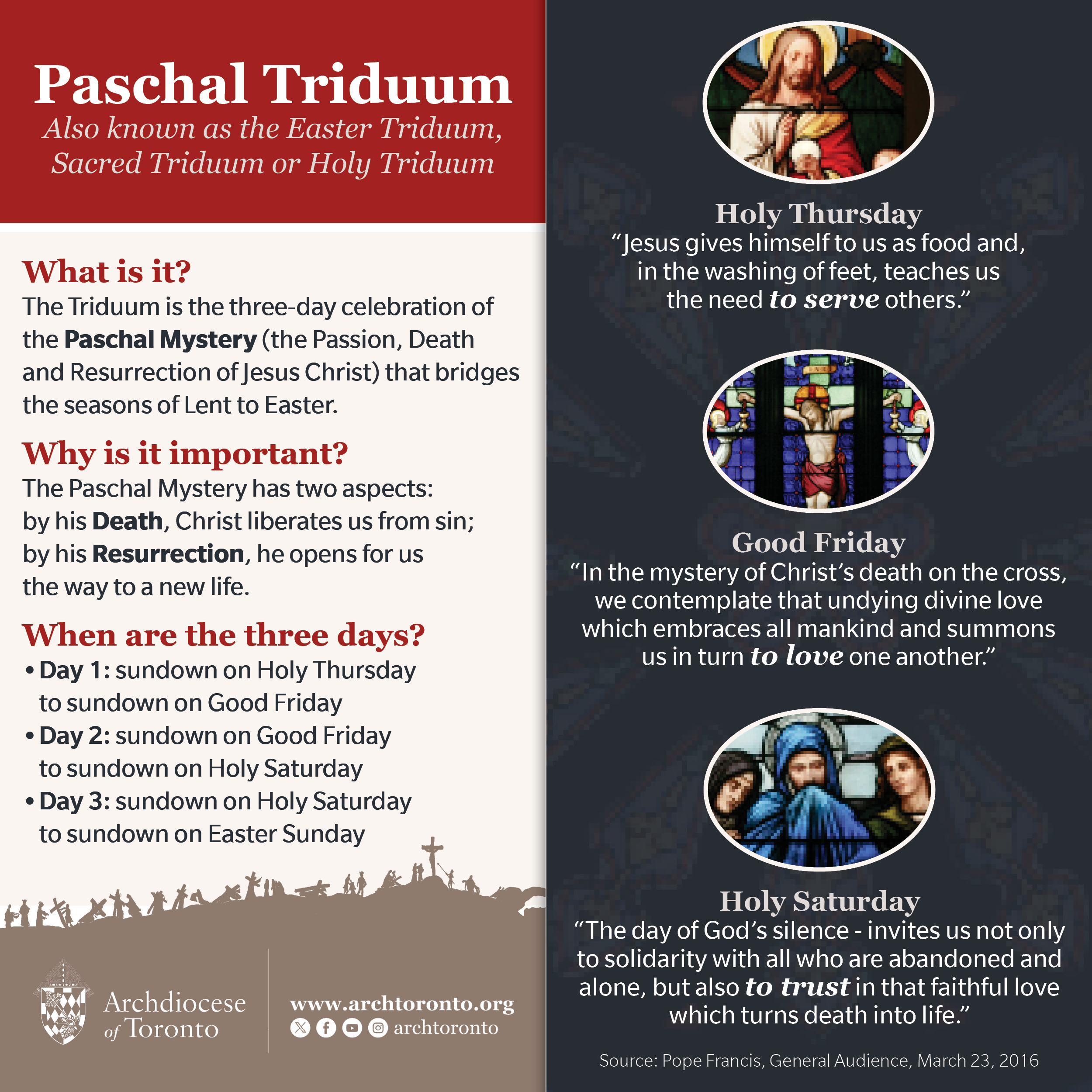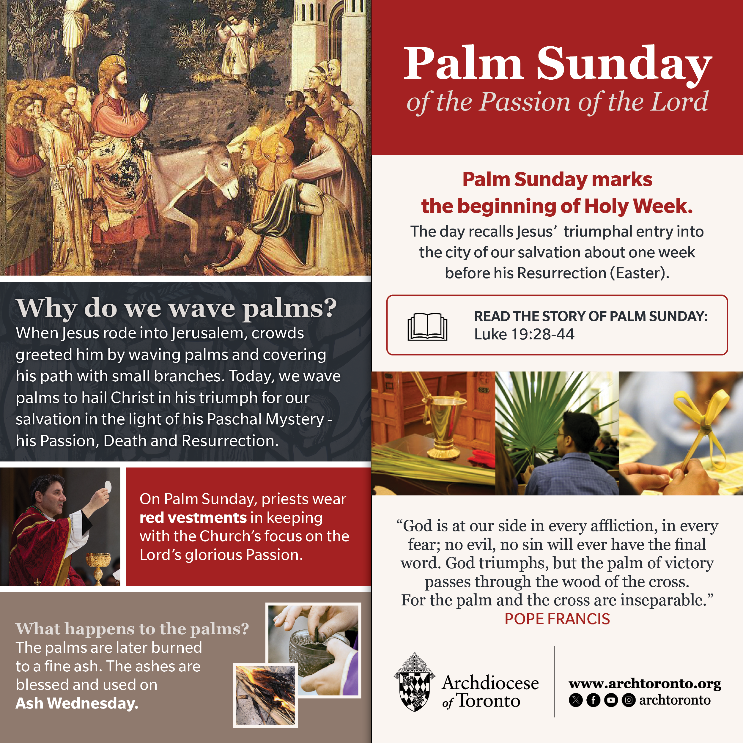 The final week of preparation before Easter Sunday is called Holy Week. These days recount Christ’s final days on earth. Traditionally on the Tuesday of Holy Week, the priests of the Archdiocese of Toronto gather for the Mass of Chrism held at St. Michael’s Cathedral Basilica.